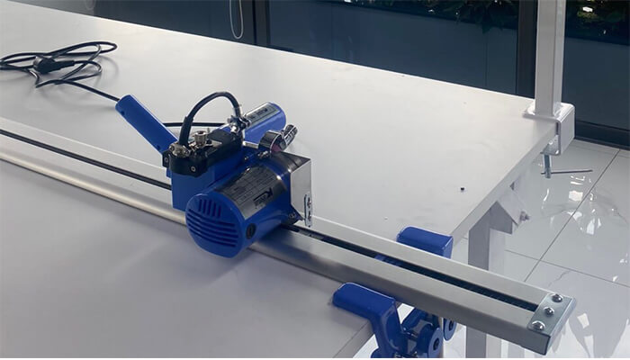 Máy cắt vải đầu bàn Kaisiman CZD-B11 dễ dàng cắt vải khổ lớn một cách nhẹ nhàng nhanh chóng. Với thanh ray 2.8m máy có thể cắt vài dài 2.4m. Máy hoạt động đơn giản linh hoạt, nhờ thiết kế 2 lò xo dẩy trong thanh ray đầu máy đưuọc đẩy đi nhẹ nhàng và trả về tự động.