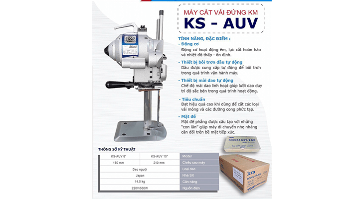 Máy Cắt Vải Đứng KM KS-AU V được nhập khẩu từ Nhật Bản, với chất lượng cũng như độ bền hơn hẵn những dòng khác.Sản phẩm được nhiều người tiêu dùng tin dùng lựa chọn. Hãy chọn cho bạn một chiếc máy cắt vải giá rẻ nhưng phù hợp với yêu cầu của bạn.Hãy gọi ngay 0931.118.077 - 0931.118.077 - 0901.102.077 để được tư vấn cụ thể, và hướng dẫn đặt hàng online, sản phẩm được giao tận nơi của bạn.
