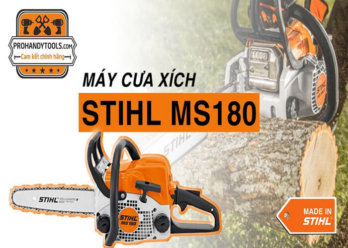 Máy cưa xích xăng STIHL MS-180 là loại máy cưa cỡ trung. Máy gọn và nặng khoảng < 4kg. Chuyên dùng để cưa các loại cây có đường kính dưới 50cm., rất tiện lợi.