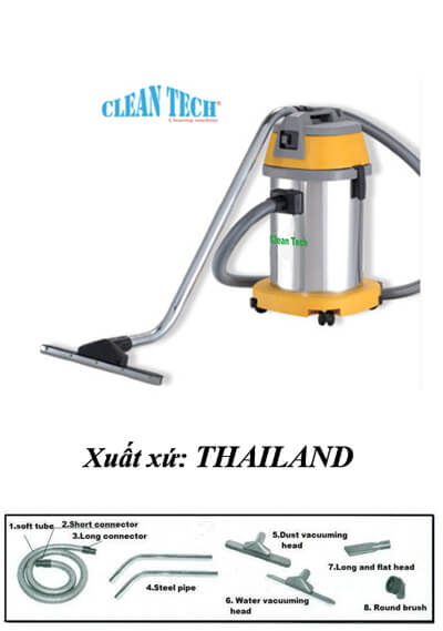 Máy hút bụi CLEAN TECH CT 130 xuất xứ Thái Lan là dòng máy hút bụi cao cấp của hãng Clean tech, được thiết kế chắc chắn, nhỏ gọn, di chuyển dễ dàng nhờ 4 bánh xe quay được 180 độ thuận tiện cho mọi địa hình. Là một trong những dòng máy hút bụi bán chạy trên thị trường hiện nay, thích hợp sử dụng ở các văn phòng, nhà máy, khách sạn, trường học...