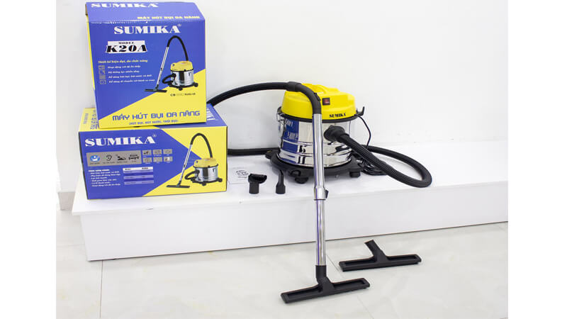 - Máy hút bụi Sumika K20A với dung tích thùng chứa lên đến 20L, hỗ trợ mạnh mẽ trong việc dọn vệ sinh cho những khu vực có diện tích lớn.