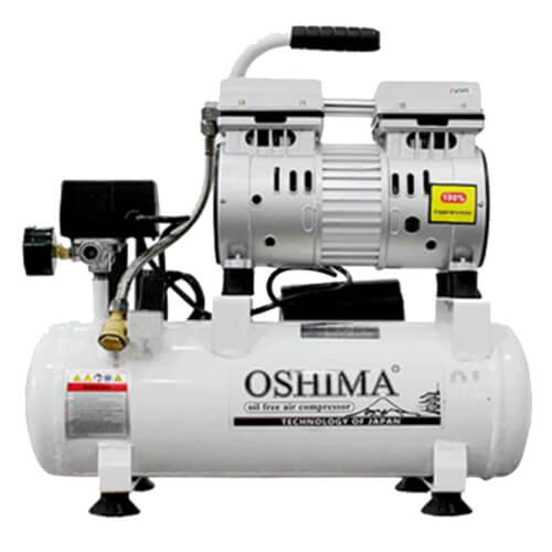 MÁY NÉN KHÍ KHÔNG DẦU OSHIMA 9L là dòng máy nén khí không dầu, công suất nhỏ 1 HP, sử dụng mô tơ dây đồng giúp máy hoạt động rất êm ái và bền bỉ, không gây tiếng ồn và độ rung thấp